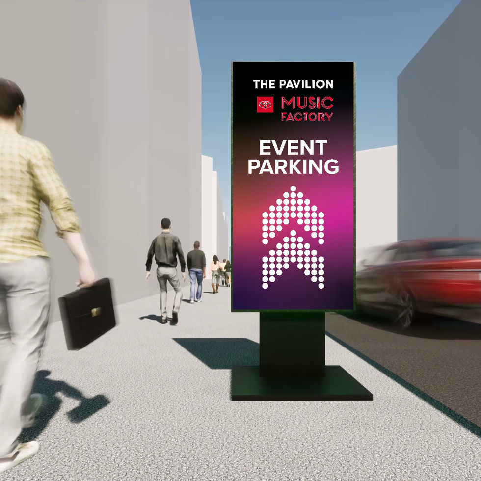 Toyota Music Factory is a large entertainment destination with restaurants, event venues, and public gathering spaces. The signage design project focused on creating a clear, cohesive, and visually engaging wayfinding system that enhances the visitor experience from arrival to exploration. The system included directional signage, building identifiers, parking guidance, and branded environmental graphics. Typography, color, and iconography were carefully selected to balance practicality with personality—ensuring the space is both intuitive to navigate and expressive of the venue’s energetic, music-driven atmosphere.